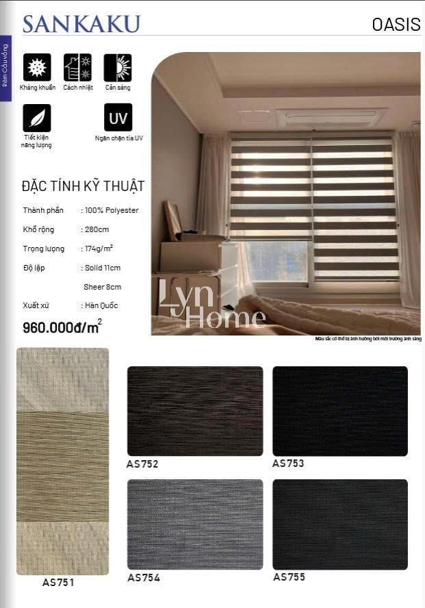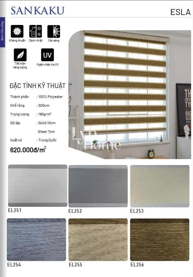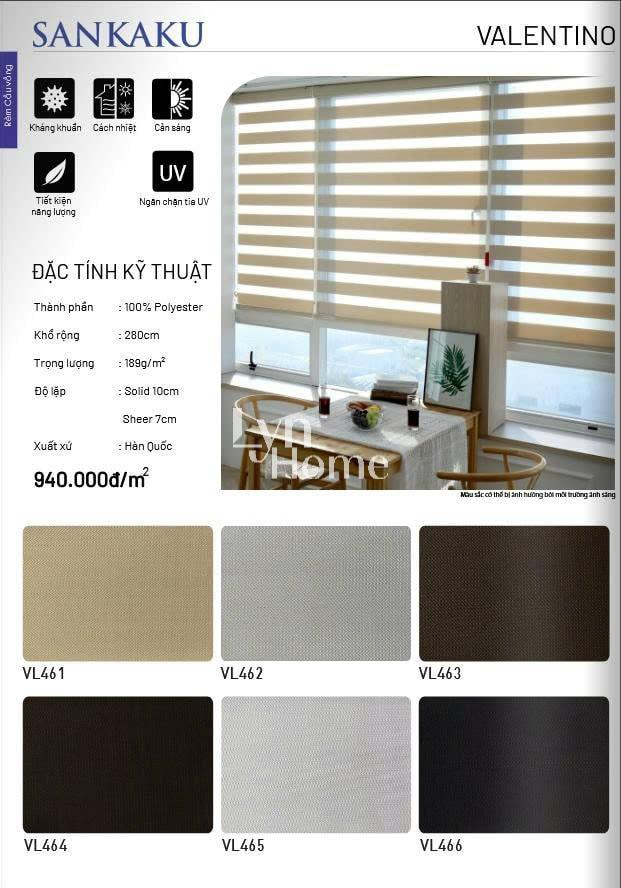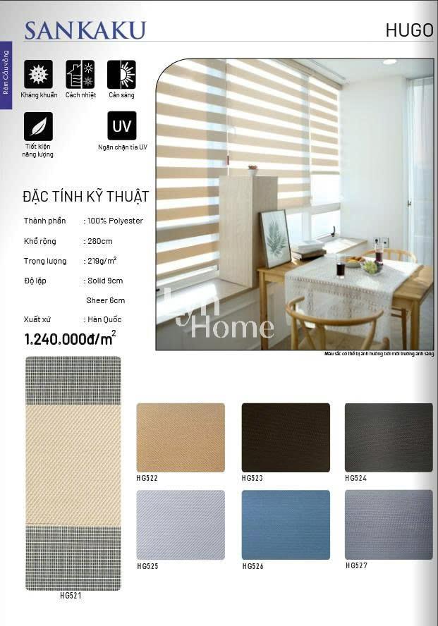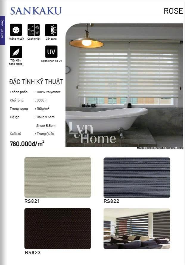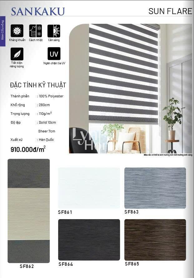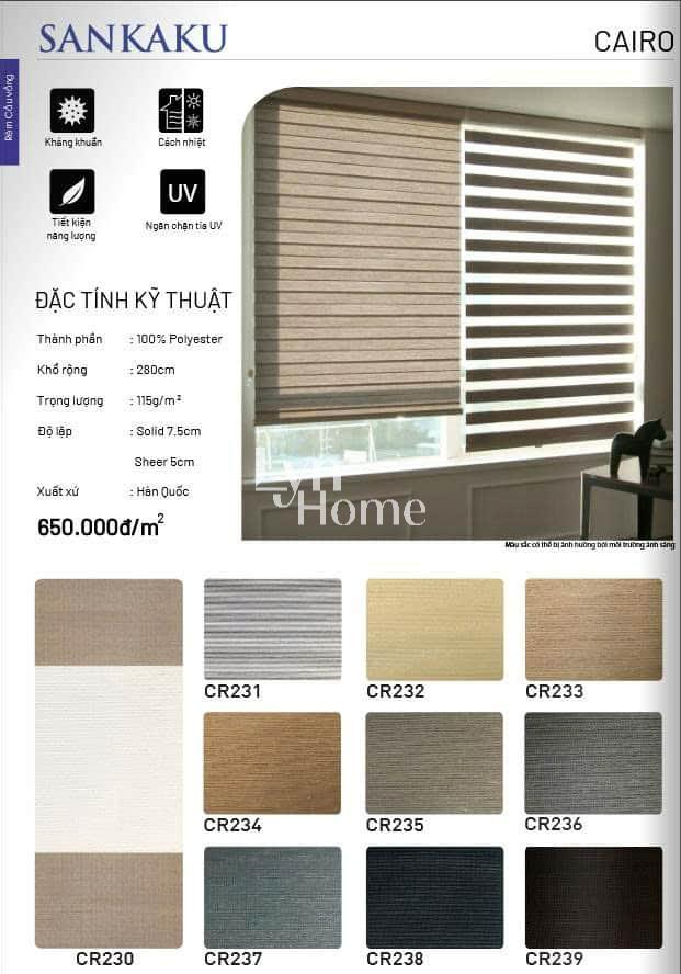 - Độ lặp rèm: Tùy vào mỗi sản phẩm; Solid (là giải không xuyên sáng): Sheer (giải xuyên sáng)