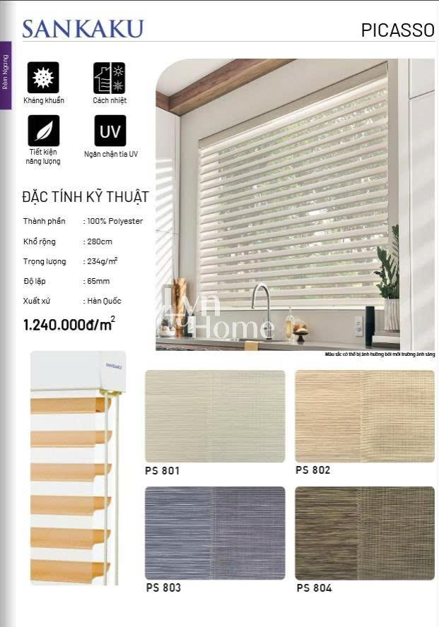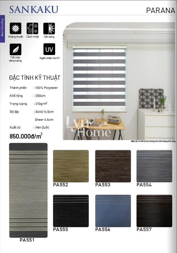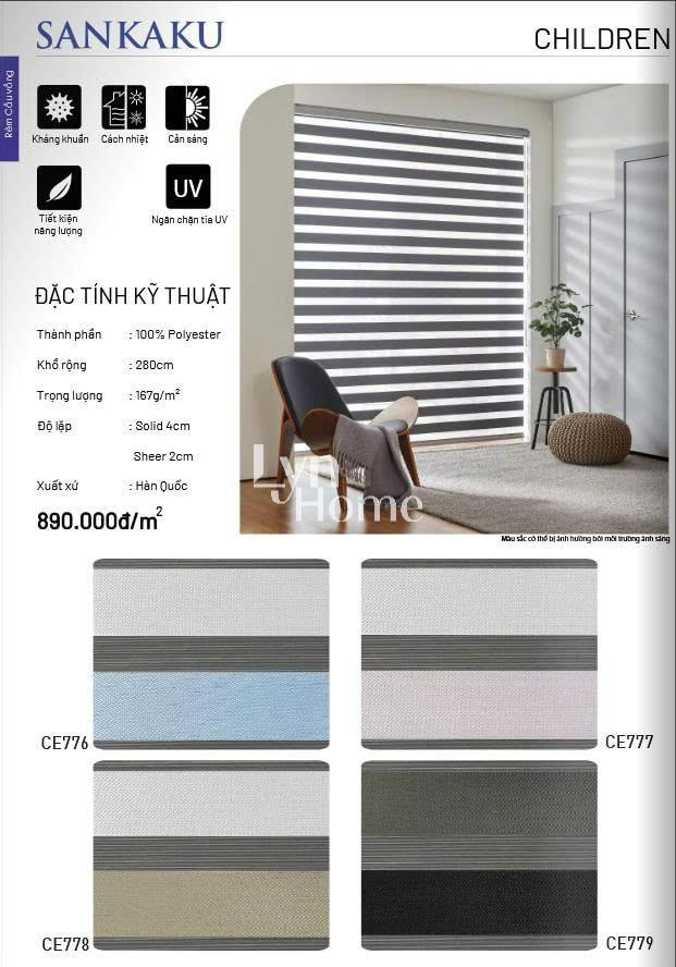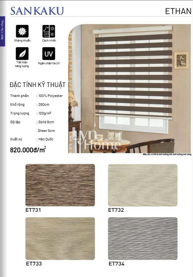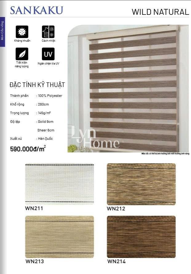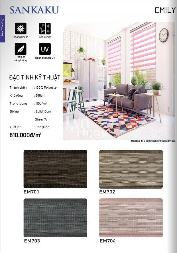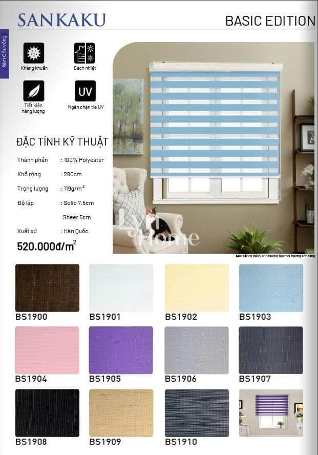 - Độ lặp rèm: Tùy vào mỗi sản phẩm; Solid (là giải không xuyên sáng): Sheer (giải xuyên sáng)